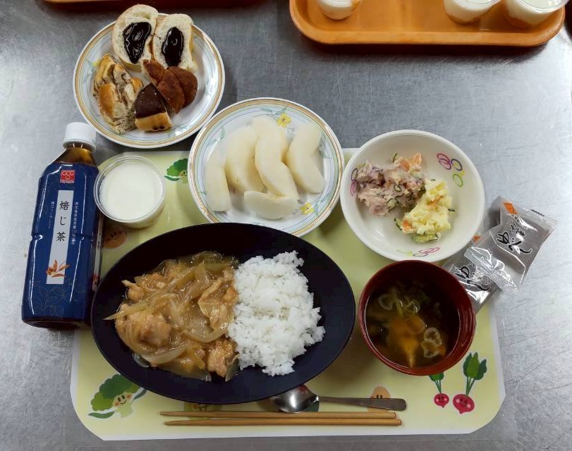 | 9月11日(木) ごはん、みそ汁、鶏肉の生姜焼き、ポテトサラダ、フルーツヨーグルト ![]() |